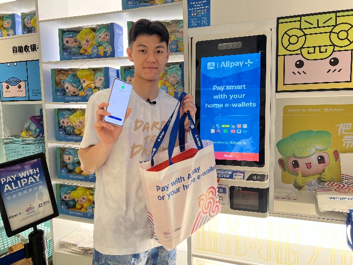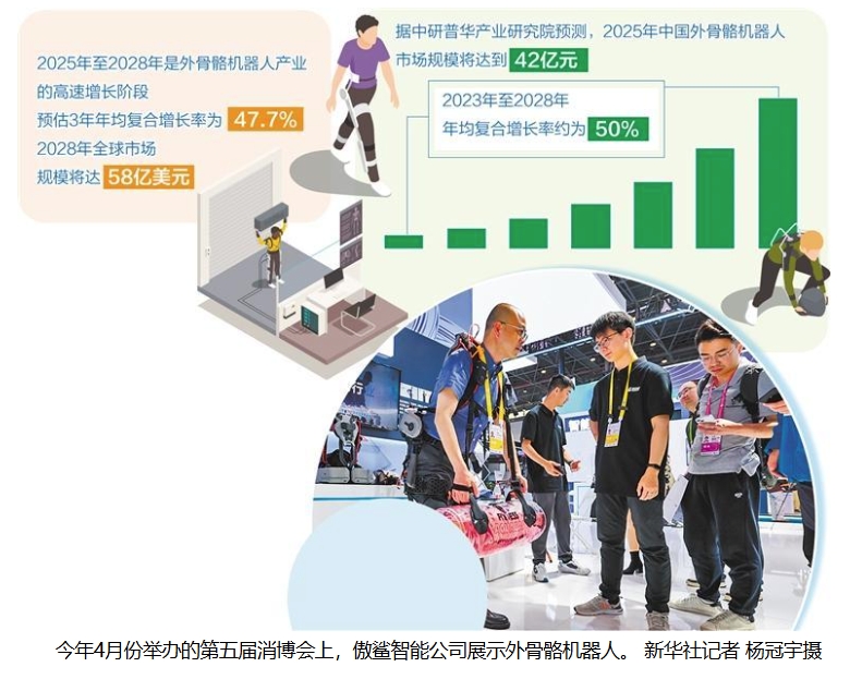 今年4月份举办的第五届消博会上,傲鲨智能公司展示外骨骼机器人。新华社记者杨冠宇摄
