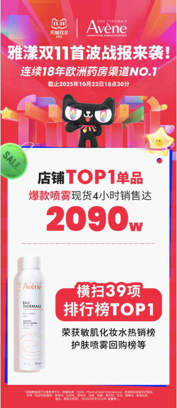 雅漾2025天猫双11捷报来袭,爆款喷雾横扫多榜单TOP1