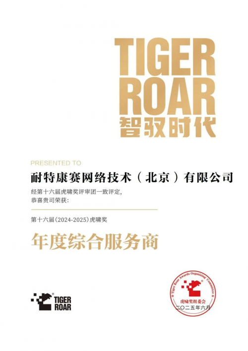 虎啸盛典见证行业实力,耐特康赛斩获“年度综合服务商”大奖
