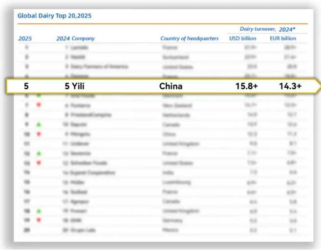 伊利稳居全球乳业五强 连续12年蝉联亚洲第一