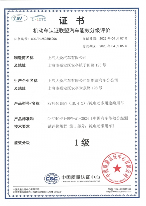 作为一款遵循德系严苛标准打造的纯电SUV,ID.4X聪明款在安全与品质上始终保持着高水准。在中保研(C-IASI)测评中,它不仅获得“五星”全优成绩,更成为唯一一款四大指数“ALLGOOD”的纯电车型,用权威测试数据证明了自身的安全实力。从电池安全到车身结构,ID.4X聪明款经过了338项严苛的安全认证标准,防磕碰全平式底盘与多层防护的电池包结构,为用户的出行筑牢安全防线。在能效方面,在中国汽车能效开发与检测认证专业联盟发布的首批纯电动乘用车能效分级测评(C-EDTC)结果中,ID.4X在四项细分测试维度中获得全一级认证,并荣获“一级能效”评价,交出了一份优异的“省电成绩单”,有效缓解了用户的续航焦虑。