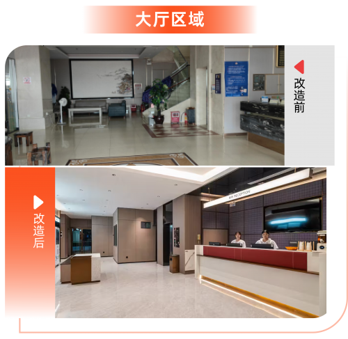 以柏曼酒店阳江东平珍珠湾店为例,前身为超10年单体老店,经过柏曼酒店团队一系列的项目勘察,评估并输出出一套改造方案,从门脸、大堂、走廊到客房等不同区域的精准改造,以3.0全新面貌重新开业,至今客评仍居4.9高分。其中,门楼外立面及门脸未改造前设计老旧已无竞争力,改造后以品牌调性为核心让现代化大气设计尽显;超110平米的单体大堂只有前台以及沙发区,而改造后以围墙隔挡作分区,将一楼分为前台区域、早餐厅以及自助区域,合理布局,住客动线更清晰简单;另外增设了自助寄存柜、自助贩卖柜等自助功能区,有效提高服务效率。而在客房区域,则保留了床箱、电视条桌等产品,以利旧、修补等手段有效缩减成本的同时,焕新整体环境的体验感,空间功能更加突出。据了解,该店单房造价不到4万,而改造后体验感翻倍。