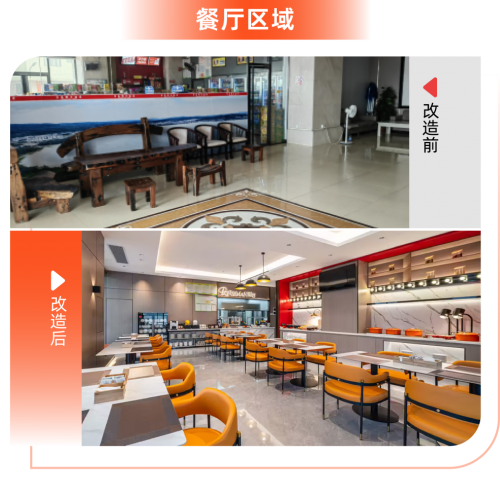 以柏曼酒店阳江东平珍珠湾店为例,前身为超10年单体老店,经过柏曼酒店团队一系列的项目勘察,评估并输出出一套改造方案,从门脸、大堂、走廊到客房等不同区域的精准改造,以3.0全新面貌重新开业,至今客评仍居4.9高分。其中,门楼外立面及门脸未改造前设计老旧已无竞争力,改造后以品牌调性为核心让现代化大气设计尽显;超110平米的单体大堂只有前台以及沙发区,而改造后以围墙隔挡作分区,将一楼分为前台区域、早餐厅以及自助区域,合理布局,住客动线更清晰简单;另外增设了自助寄存柜、自助贩卖柜等自助功能区,有效提高服务效率。而在客房区域,则保留了床箱、电视条桌等产品,以利旧、修补等手段有效缩减成本的同时,焕新整体环境的体验感,空间功能更加突出。据了解,该店单房造价不到4万,而改造后体验感翻倍。