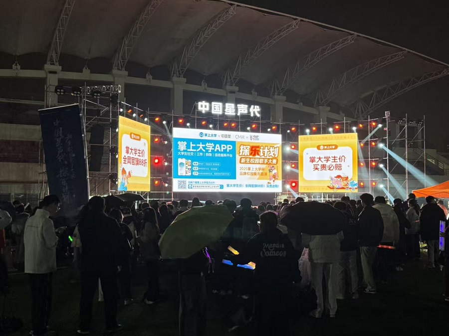 与许多仅聚焦于决赛夜黄金时段的品牌赞助不同,掌上大学此次的校园投入展现出了更长期的布局。据了解,其路演活动从当天白天便已启动,并贯穿至晚间决赛结束,形成了一次完整、持续的品牌展示。即便晚间露天赛场秋雨飘洒,其路演点位依然保持运营,这与学生撑伞观赛的场景共同构成了当晚的真实画面。
