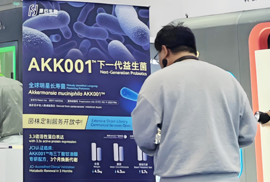 作为长寿科技领域的创新代表,原衍生物首次参展即引发广泛关注。活动现场,该企业重点展示了AKK001、三丁酸甘油酯微囊粉、Somato®番茄提取物、Actiz!ng™黑生姜提取物及Miricell™米胚芽提取物五大核心原料,凭借在肠道微生态调控、抗氧化与细胞修复、代谢健康改善等方面的显著应用潜力,吸引一众功能食品、营养保健企业,医药及科研机构代表驻足咨询。