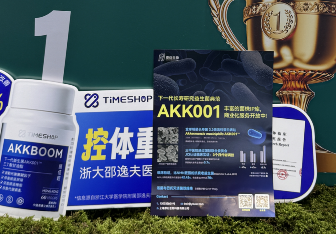 值得关注的是,AKK001原料的首个合作品牌TimeShop此次也同步参展,其落地产品“肠倍轻AKKBOOM”成为现场爆款展品之一,吸引了大量观众体验咨询。据了解,该产品上线10天成交即突破5万瓶,在2025年618大促期间更是创下GMV超1500万元、销量突破10万瓶的行业纪录,成为功能性膳食补充剂领域的标杆产品。
