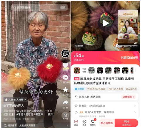 “了不起的匠人”团队十年拍摄了300多种非遗传统手工艺纪录片,当他们把镜头对准一位位手艺人,讲述泥塑“皮老虎x冰箱贴”如何从黄河边的泥土变成驱邪纳福的吉祥物时,商品就不再是冰冷的摆件,而成了有温度的文化载体。用户为手艺买单,也为故事动容。正是通过这样的内容,一件乡土玩具变为治愈系潮流文创,店铺日均GMV实现了数倍增长。