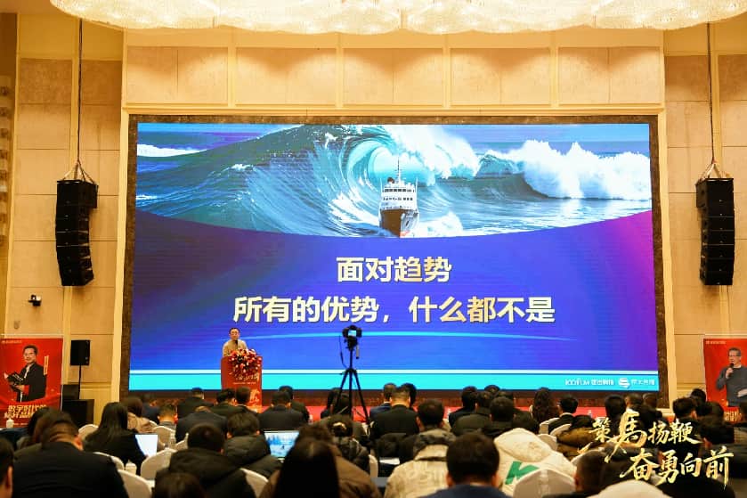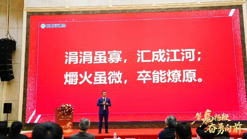 董事长汪洪峰的年度主题宣讲更是振奋人心。他用后汉书中的“涓涓虽寡,汇成江河;爝火虽微,卒能燎原。”阐述了联盛医药集团的成长逻辑。集团的发展如同涓涓细流汇聚成江河,微弱爝火终能燎原,每一步的积累都为今日的辉煌奠定了基础。而“敬慎不败,大蹇朋来。”这八个字则解析了一个人变优秀的深层内核,提醒员工们要保持敬畏和谨慎的态度,才能在面对困难时吸引志同道合的朋友,共同克服挑战。此外,董事长还强调了AI的重要性,指出2026年是AI快速发展的一年,AI驯化和驯化AI同等重要,集团将进一步提升组织的含AI量,积极拥抱科技变革,为未来发展注入新的动力。