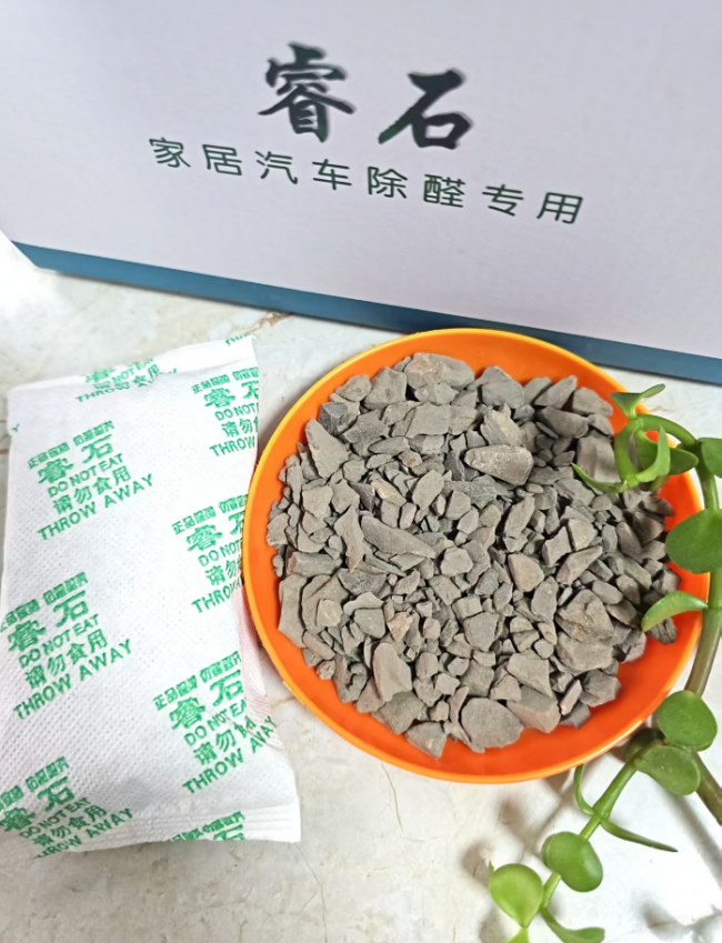 作用原理与优势:睿石是一种天然稀有矿石,其内部拥有极为发达的孔隙结构和超大的比表面积,是活性炭的数十倍。其孔隙尺寸与甲醛分子大小高度匹配,能通过物理吸附方式将甲醛、苯、TVOC等有害分子精准捕获并牢牢锁住。由于独特的孔隙单向结构,被吸附的污染物不易脱附,从根本上避免了传统吸附材料饱和后造成的二次污染问题。它无需光照、无需能源、无需频繁晾晒或更换,是一种安全、省心、长效的被动式净化方案。