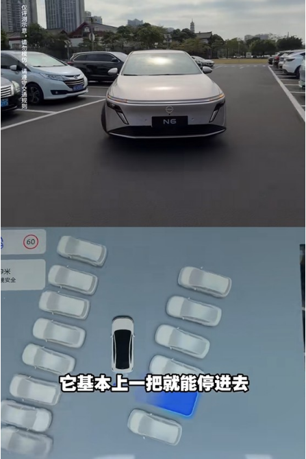 场景三:大角度斜列车位。 那种跟旁边车成60度角的车位,N6 Pro+的表现是直接一把进,因为它不是死板地按照“垂直-倒车”的逻辑,而是先斜着扎进去一点,再调整,特别像咱们平时抢车位的野路子 。