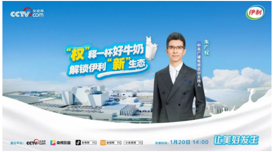 日前,中央广播电视总台央视网《“权”释一杯好牛奶,解锁奶业“新”生态》特别直播节目在多个平台播出。节目邀请到中央广播电视总台著名主持人朱广权走进伊利集团,探寻一杯伊利牛奶的“硬核品质”;节目也以全景视角,系统呈现伊利通过构建“从一棵草到一杯奶”的全链创新生态,持续引领中国奶业高质量发展。