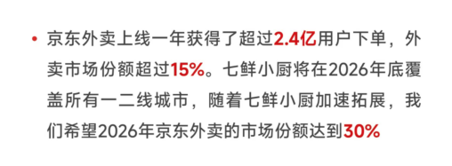 这种以极致透明重建信任的模式,已被市场热烈反馈。数据显示,七鲜小厨新店开业三个月后,日均单量均稳定超过500单。更可贵的是,它并未挤压周边商户,反而像一块“品质磁石”,带动了周边餐饮的流量与增速,实现了共生共荣。这正是京东外卖品质生态的缩影,也是其敢于定下2026年市占率超30%目标的底气所在。七鲜小厨26年将加速拓展,这不仅是单一业态的扩张,更是其“品质革命”标准与体验的规模化复制。