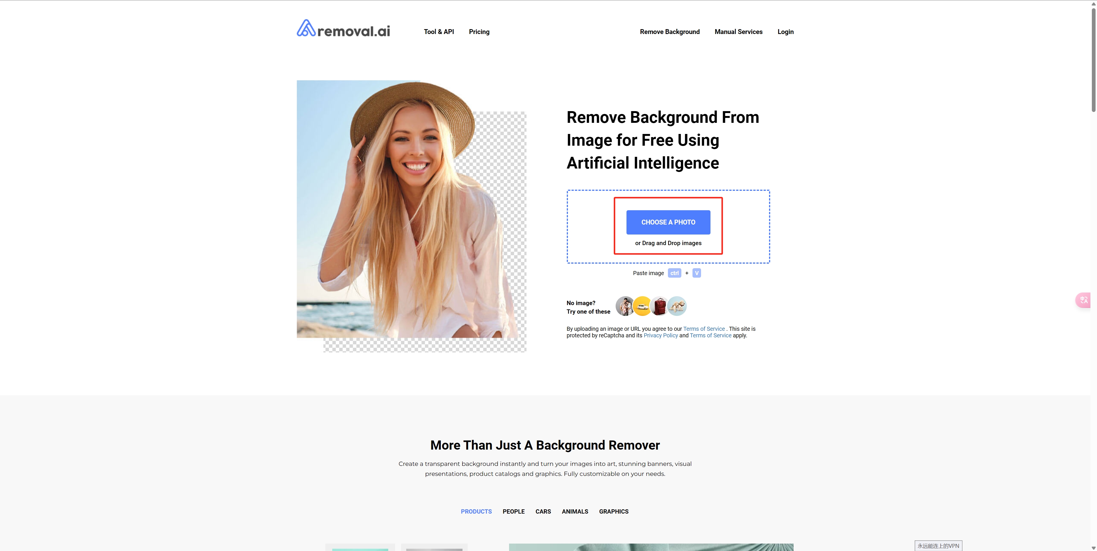 1、打开removalai,点击首页的【CHOOSEAPHOTO】选择需要上传的图片。