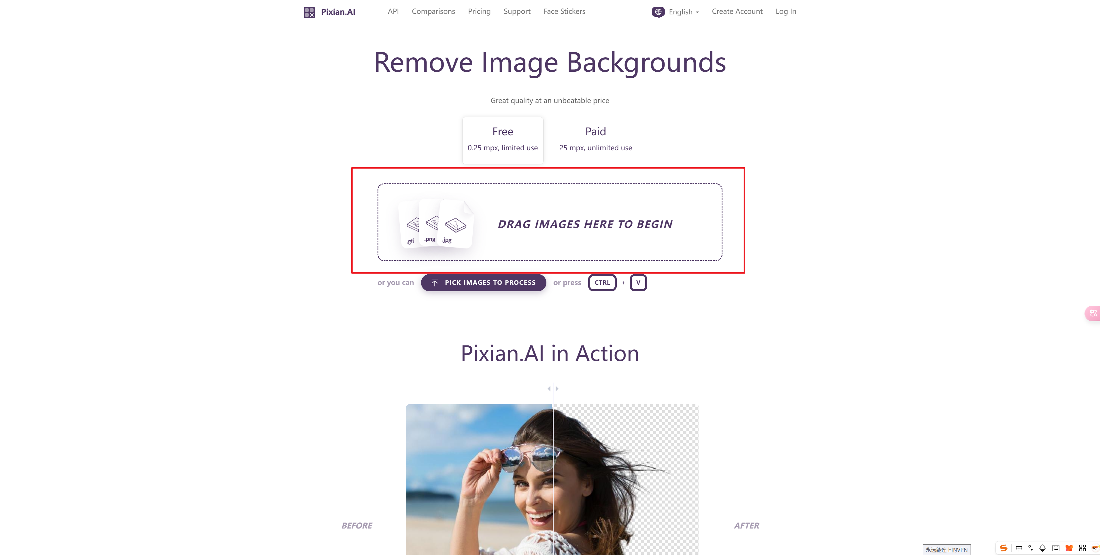 1、进入首页,点击【DRAGIMAGESHERETOBEGIN】按钮上传图片。