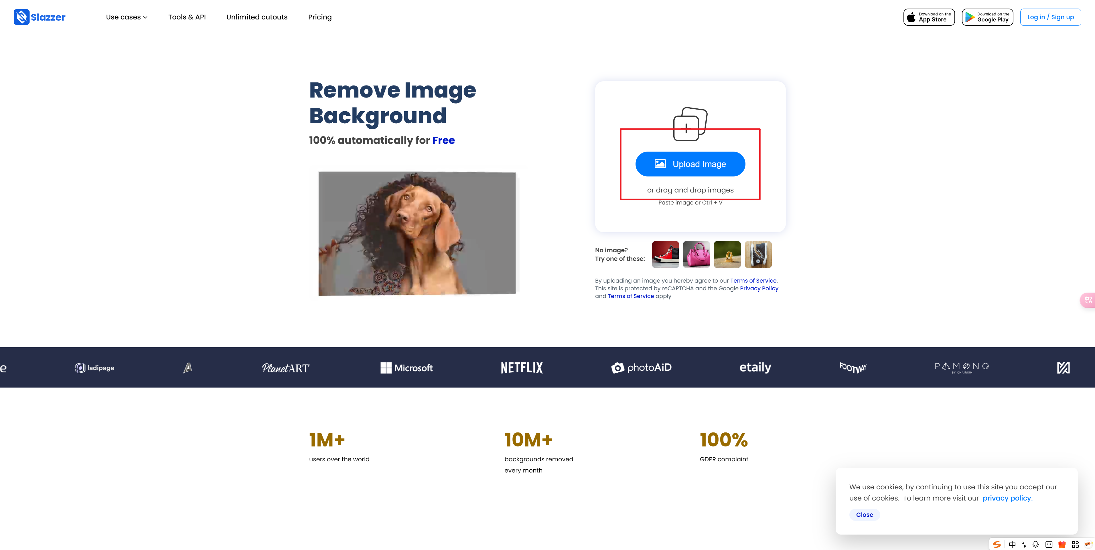 1、进入slazzer,点击页面上的【UploadImage】按钮,上传你需要抠图的按钮。
