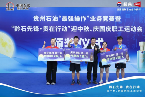 而在“赖茅杯”标志性项目——羽毛球赛事中,参赛选手贡献了令人紧张、叫绝的网前对决,男单女单展现了精彩球技,混双选手们则展现了中国石化人的团结拼搏精神,一幕幕精彩瞬间不断上演。最终,来自黔南分公司的白欢获得女单冠军,黔南分公司杨轩斩获男单冠军,混双冠军则被来自黔东南分公司的龙勇/何敏菊获得。