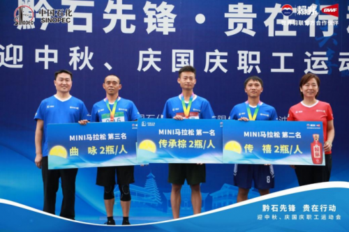 在率先完赛的微型马拉松赛事中,来自贵阳油库的蔡显华在150名选手中脱颖而出,以29分25秒的成绩收获冠军,来自贵阳油库的王飞和来自遵义石油分公司的田烽分获二三名。