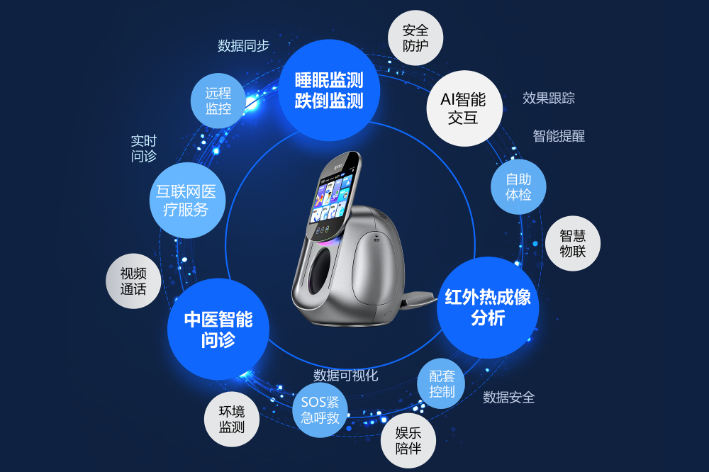 针对老人倾向的居家养老需求,桌面款机器人化身 “电子儿女” 般的守护力量。其集成一体式血压计与高清摄像头,老人无需复杂操作,伸手即可完成血压、心率、体温、血氧、血脂、心电、血糖、尿酸、总胆固醇多项核心国家二级医疗器械标准健康检测,实时同步至家属手机端,异常情况即刻预警并推送专业建议。搭配中医舌面诊、跌倒监测、助眠及睡眠监测等功能,可选配的 AI 红外热成像与脉诊服务更实现 “望闻问切” 智能化,让居家养老从 “基础照护” 升级为 “品质守护”。