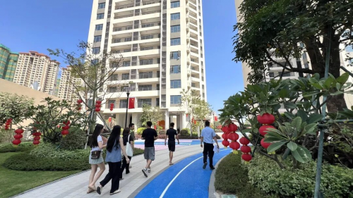而在吴川・敏捷金玥府,交付现场的布置同样充满仪式感。迎宾红毯延伸至小区入口,绿树与鲜花相映成趣,浓郁的喜庆氛围扑面而来。工作人员以饱满的热情迎接每一位业主,全程陪伴办理交房手续,用高效的服务节奏与温暖的沟通态度,让业主感受到“回家”的归属感。