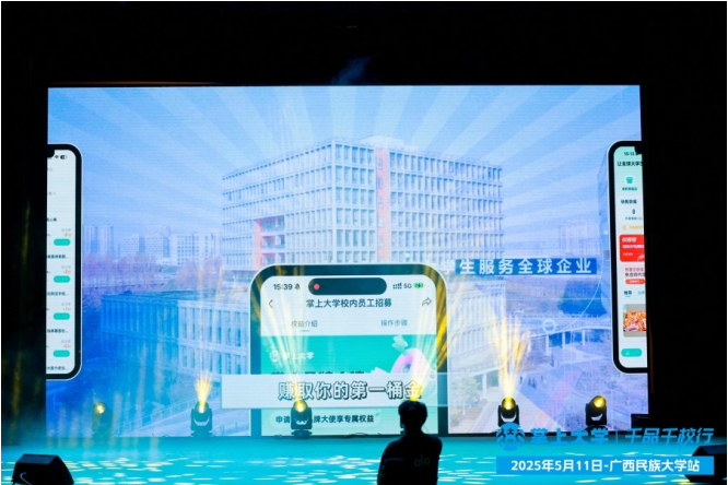 无独有偶,2025年5月11日,掌上大学赞助的广西民族大学民族学与社会学学院 2025 届毕业晚会暨表彰大会盛大开启。晚会中场对掌上大学创立的根本以及其 app 进行了介绍,让学生们对掌上大学有更多的了解,也知道平台提供的实习就业机会。