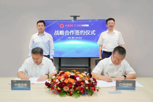 在“双碳”战略深入推进、储能产业从“规模扩张”向“价值深化”转型的关键阶段,企业间的协同合作成为推动行业高质量发展的重要动力。2025年10月15日,惠州亿纬锂能股份有限公司(以下简称“亿纬锂能”)子公司武汉亿纬储能有限公司与中建材信息技术股份有限公司(以下简称“中建材信息”)在惠州正式签署战略合作协议。双方将依托各自资源与技术优势,围绕储能项目全链条展开深度协同,不仅为储能产业创新发展提供“技术+资源”的融合范本,更将为国家绿色低碳转型注入强劲储能力量。